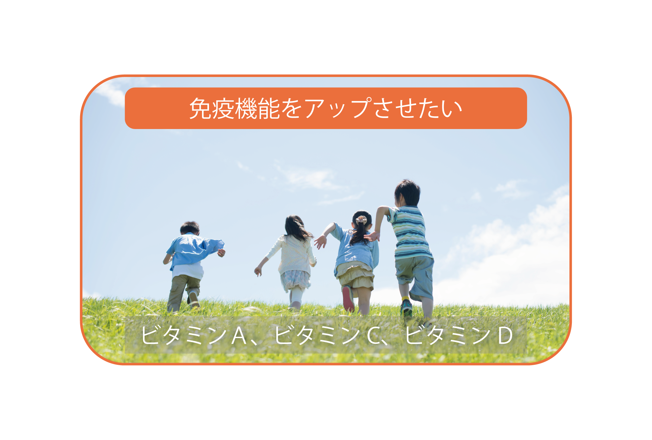 子どもの免疫機能をアップさせるには「ビタミンA」「ビタミンC」「ビタミンD」11種類のビタミンを配合し、食事で不足しがちな栄養素を補います
